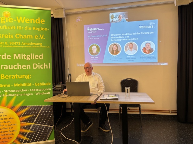 Als Referent begrüßte uns diesmal Detlef Nitschke, von dem Photovoltaik Unternehmen "EKD" Energiekonzepte Deutschland. Detlef Nitschke stellte EKD vor und informierte über dessen Produkte und das Ganzjahreskonzept EKD+. Bei der Planung einer PV-Anlage sind auch die Themen Ergänzungsstromversorgung bei Mehrfamilienhäusern mit PIONIERKRAFT interessant. Im Bereich Wärmepumpen ist die Zusammenarbeit der EKD mit Panasonic/Galvany ein wichtiger Baustein. Die EKD als Messstellenbetreiber wechselt nicht nur den Zähler, sondern installiert auch den Smart Meter.